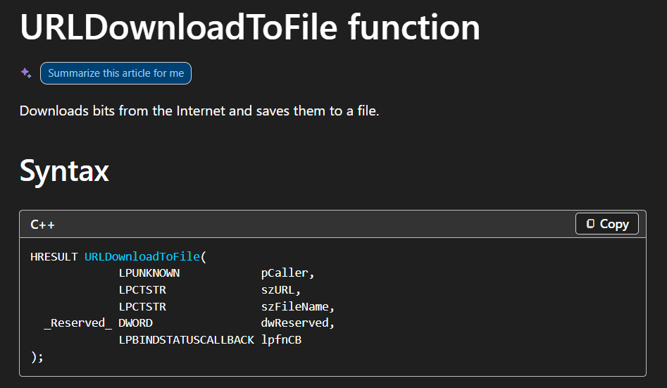 For example, the download URL capability is tied directly to the URLDownloadToFile API: