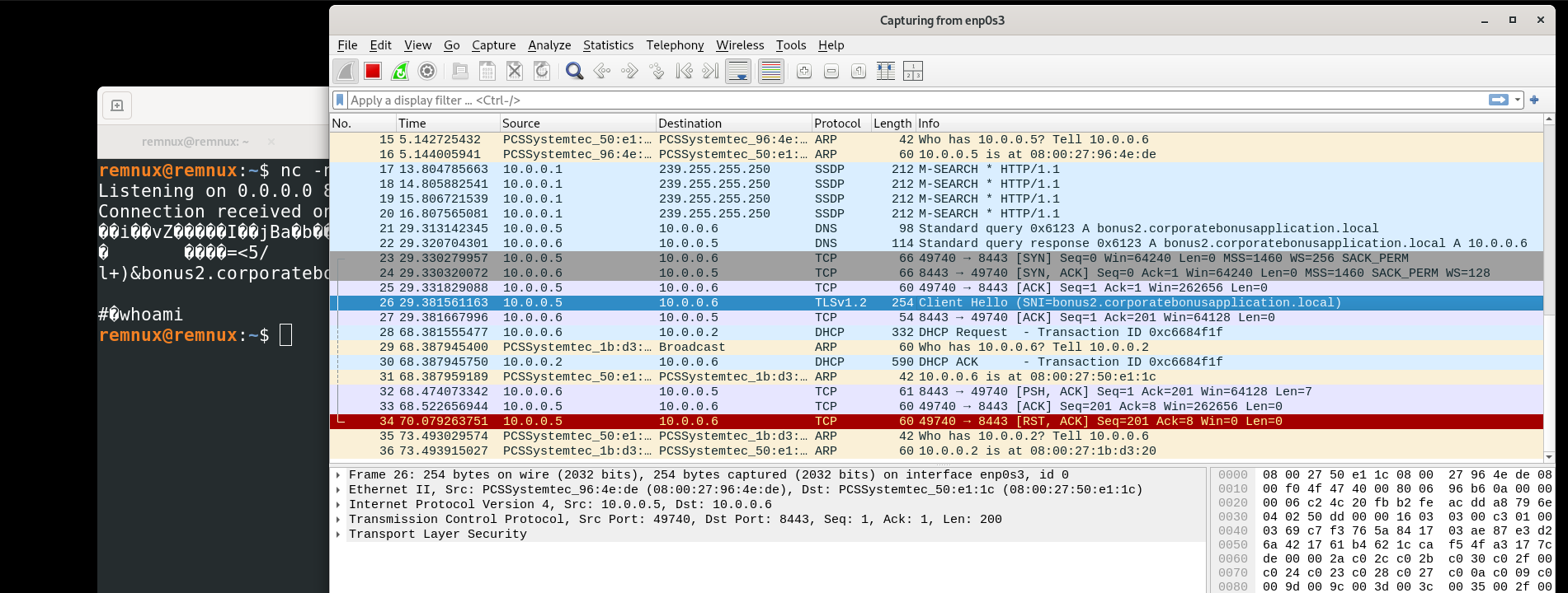We could not get a full shell because the connection moved beyond a simple TCP callback and expected a proper TLS session to continue. In other words, the malware was not just opening port 443, it was trying to communicate over HTTPS, which means the handshake likely required a valid certificate on the other end. Since we did not have the expected certificate or a matching TLS setup, the connection could not fully complete, so the shell was never established.