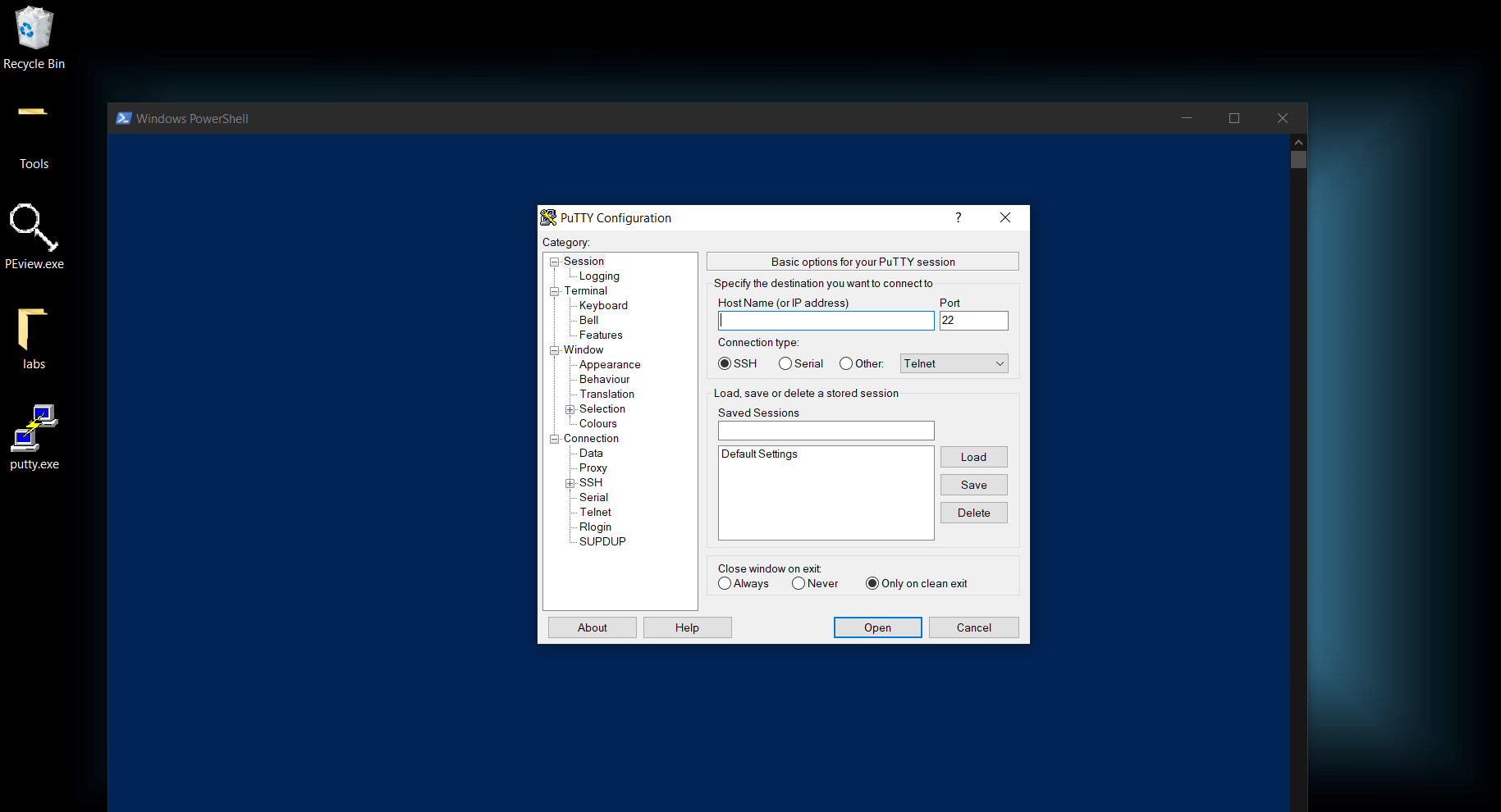 When I ran the sample without internet simulation, a blue PowerShell-like window appeared briefly in the background for a few seconds and then disappeared, while the PuTTY window stayed in the foreground.