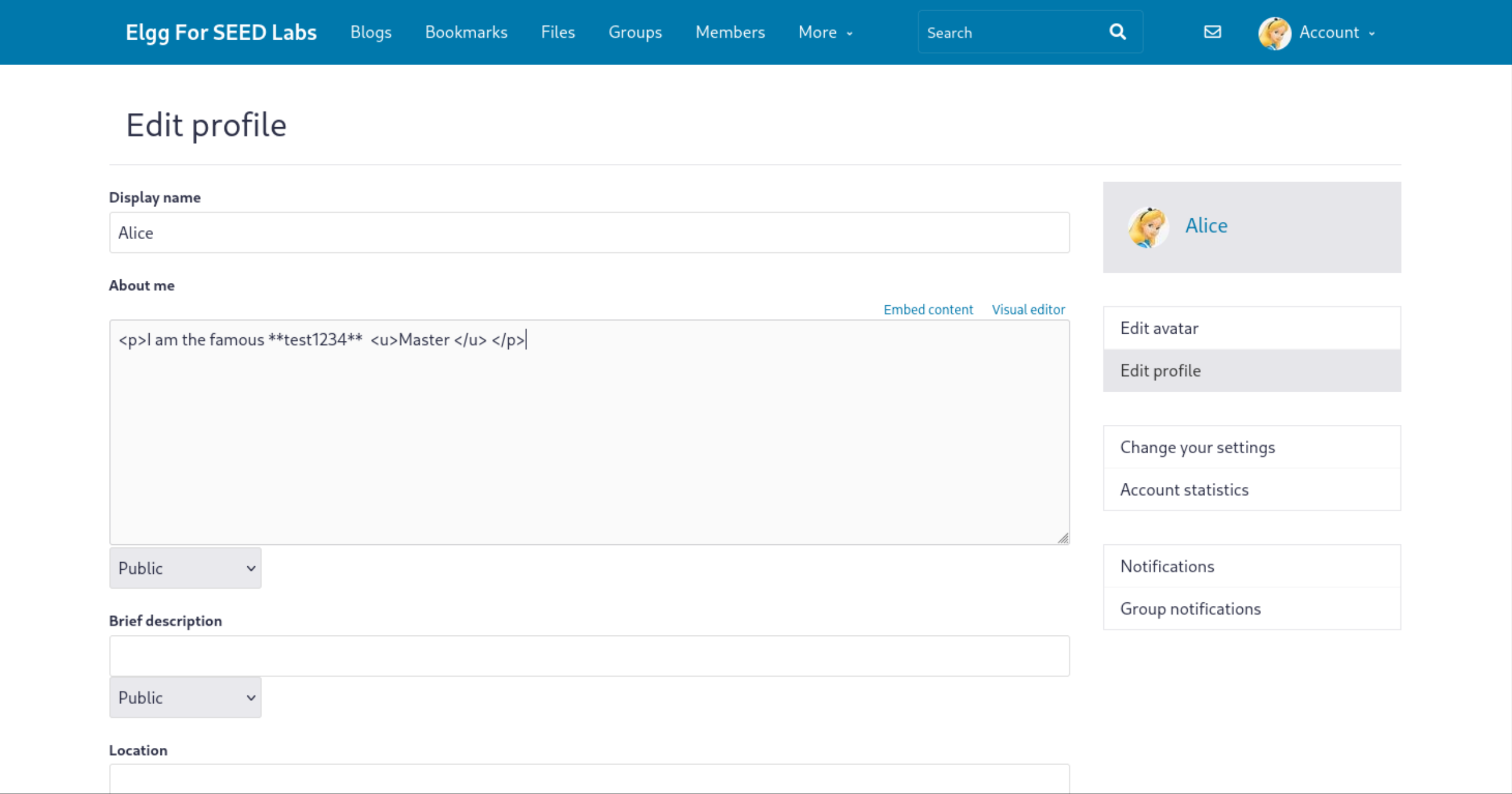 I constructed a malicious Ajax POST request to edit Alice’s profile when she visits Samy’s profile: